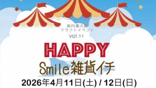 2026年4月11日(土)・12日(日)Happy Smile 雑貨イチ!vol.11 / 北谷公園内 Agre(アグレ)ドーム北谷